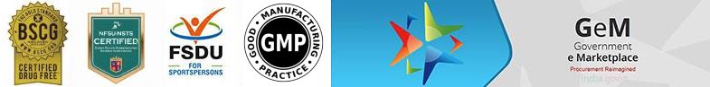 ’Our sports supplements are now registered under FSSAI as ‘Food For Special Dietary Use’(FSDU) for Sportsperson. Our supplements are tested thoroughly and certified Dope-Free by ‘Banned Substance Control Group’ (BSCG), California and ‘National Forensic Science University’ (NFSU-NSTS), Gujrat. We are also on GeM portal
